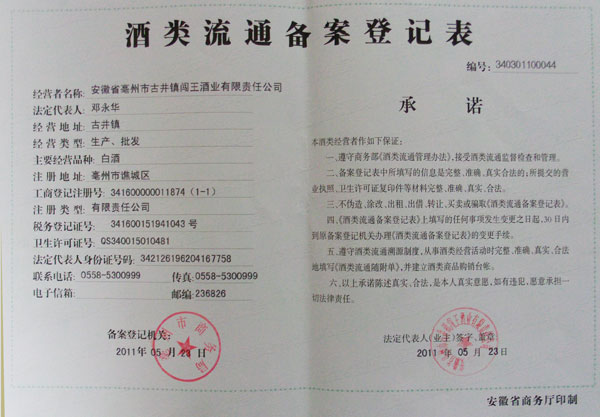 安徽闯王酒业有限责任公司